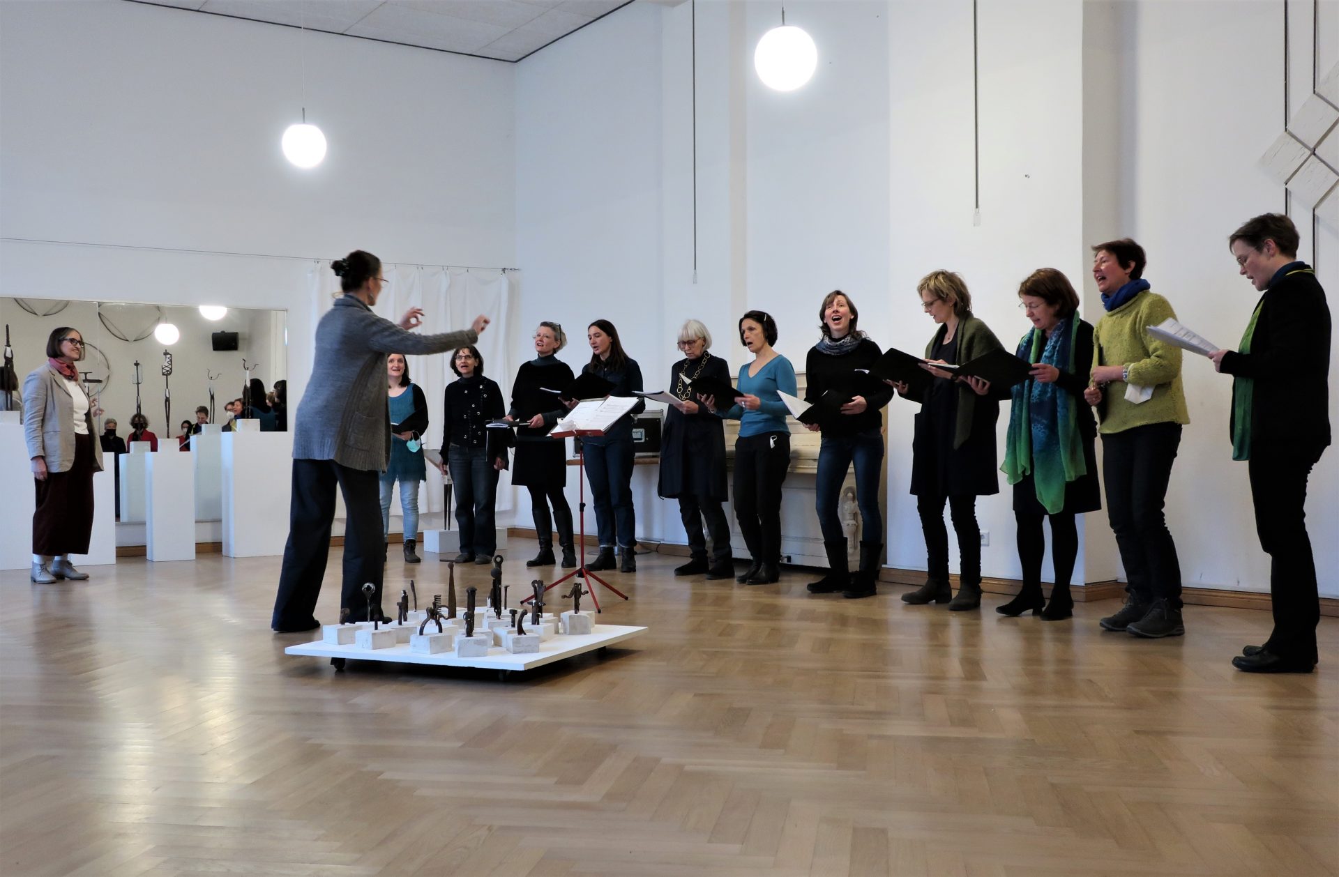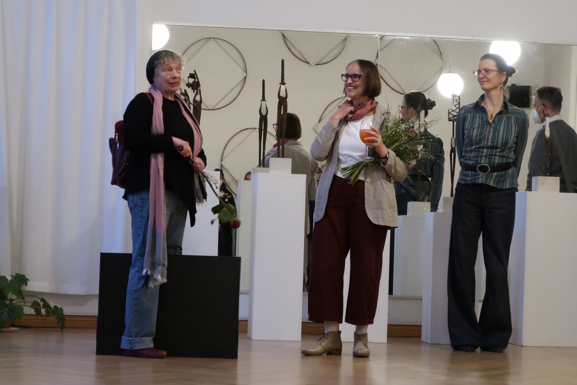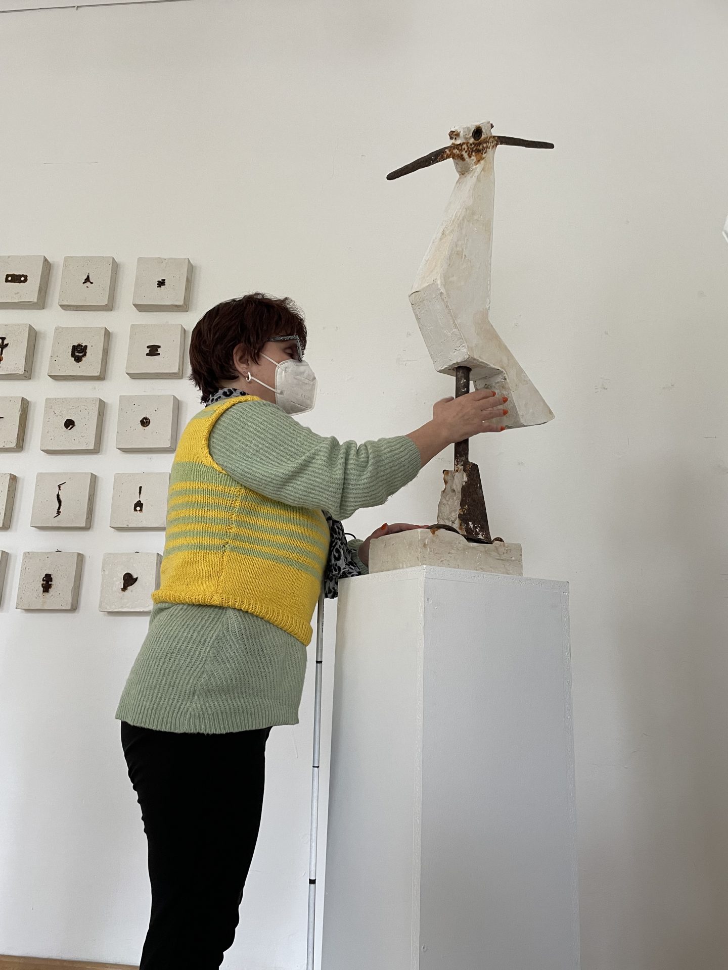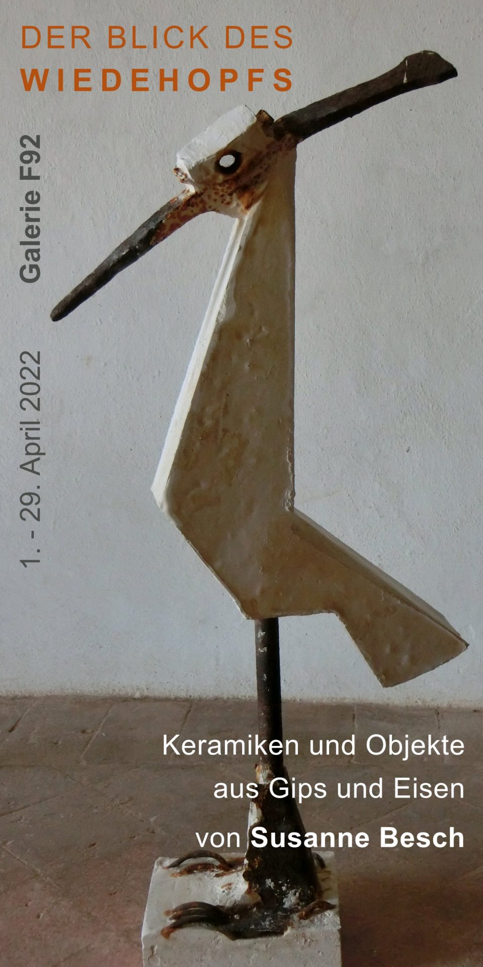 Im April 2022 zeigten wir in der Galerie F92 die Ausstellung "Der Blick des Wiedehopfs" mit Arbeiten aus dem Werk unserer ehemaligen Kollegin Susanne Besch. Zu sehen waren Keramiken und Objekte aus Gips und Eisen, die Susanne in den 1980er Jahren im Haus der jungen Talente und über viele Jahre während ihrer Aufenthalte auf der Insel Elba geschaffen hatte. Dazu gab es ein umfangreiches Rahmenprogramm, u. a. eine Vernissage mit dem Kiezchor "Fisch im Wasser", eine Tastführung für Menschen mit Seheinschränkung, einen HdjT-Workshop und einen Filmabend. Am 29. April 2022 gab es dann den feierlichen Abschied, verbunden mit der Finissage "Tanz über den Main".