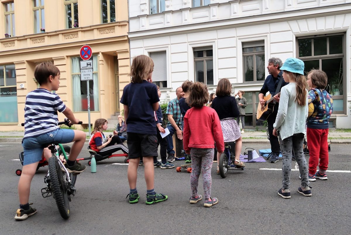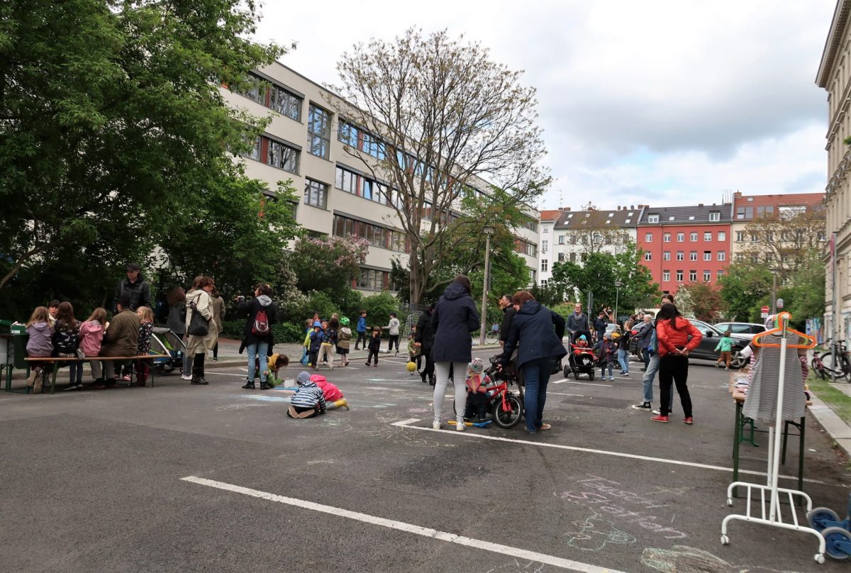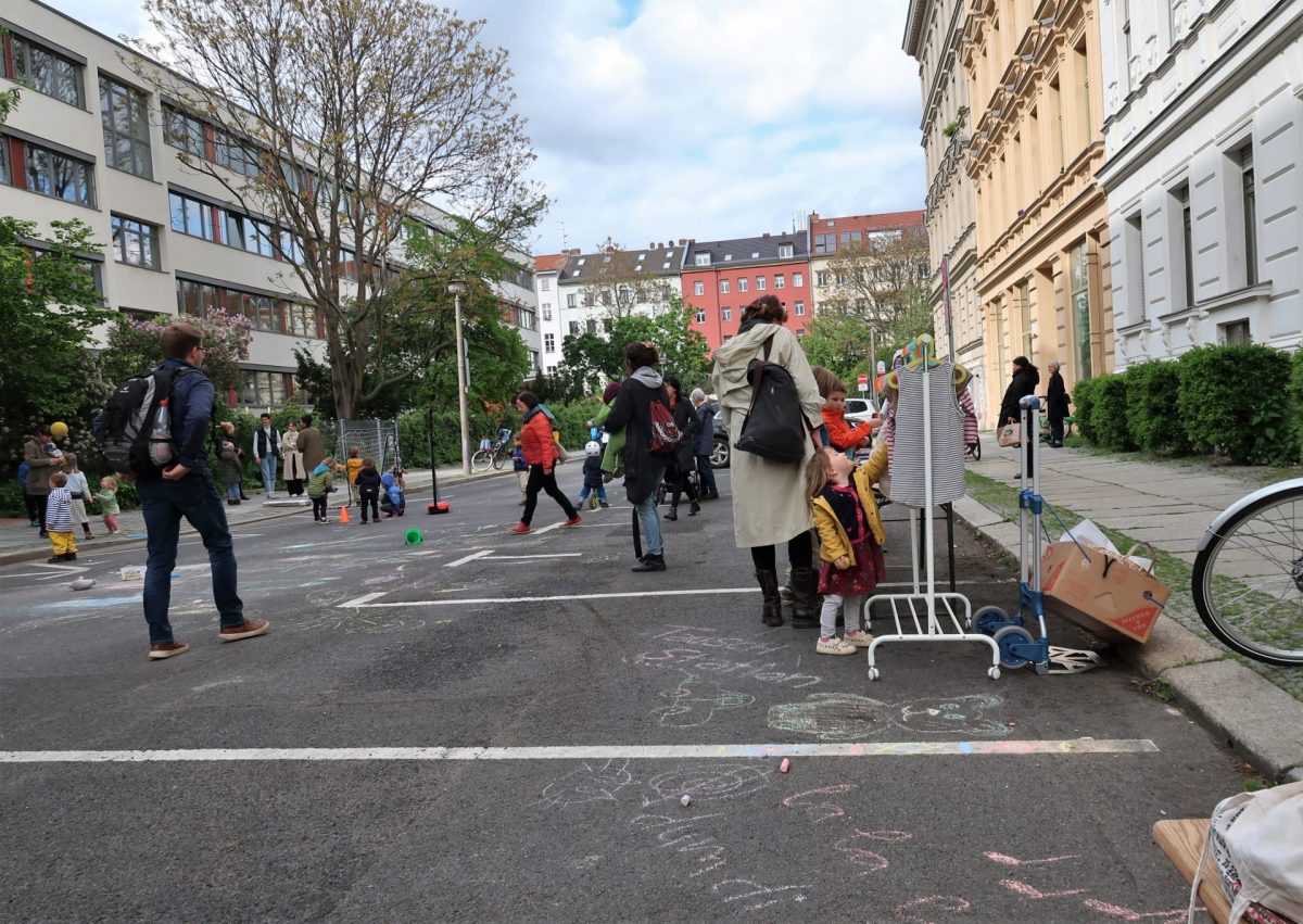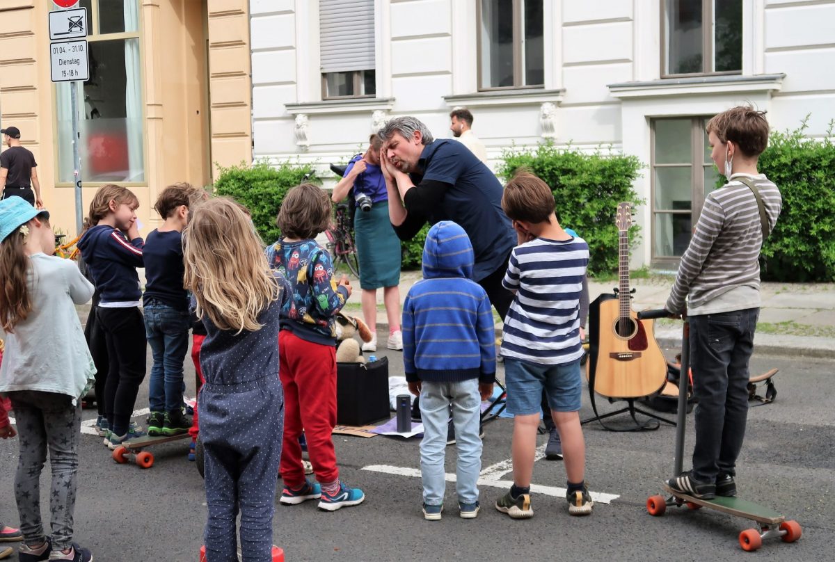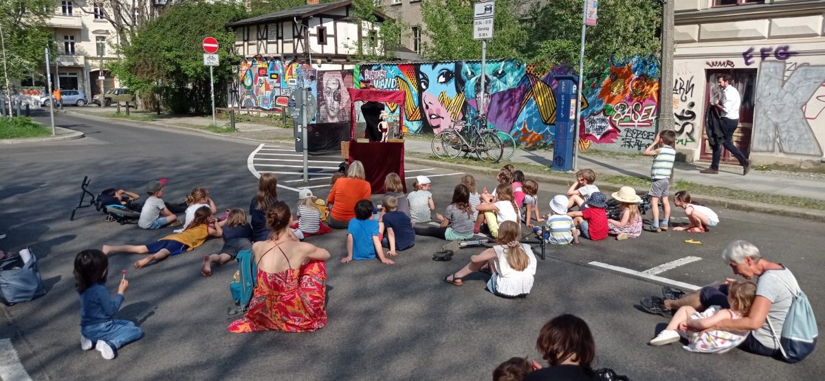 Am 11. Mai 2021 gab es auf der Templiner Spielstraße eine Besonderheit zu bestaunen: Das Puppentheater Fingerleicht führte das Stück "Des Kaisers neue Kleider auf", dem knapp 30 kleine und große Kinder gespannt folgten. Außerdem konnte erstmals unsere nagelneue Tischtennis-Platte bespielt werden. Am 18. Mai 2021 bauten wir auf der Spielstraße Tische und Kleiderständer für den Kleidungs-, Spielzeug- und Medientausch auf. Um zum Internationalen Kindertag, am 1. Juni 2021, spielte der Liedermacher Krawuttke Kinderlieder. Die Temporäre Spielstraße war an allen drei Terminen sehr gut besucht, die Stimmung bei bestem Frühjahrswetter ausgelassen. Kleiner Wermutstropfen: Einige Anwohner immer noch vergessen, ihre Autos umzuparken. Schade.