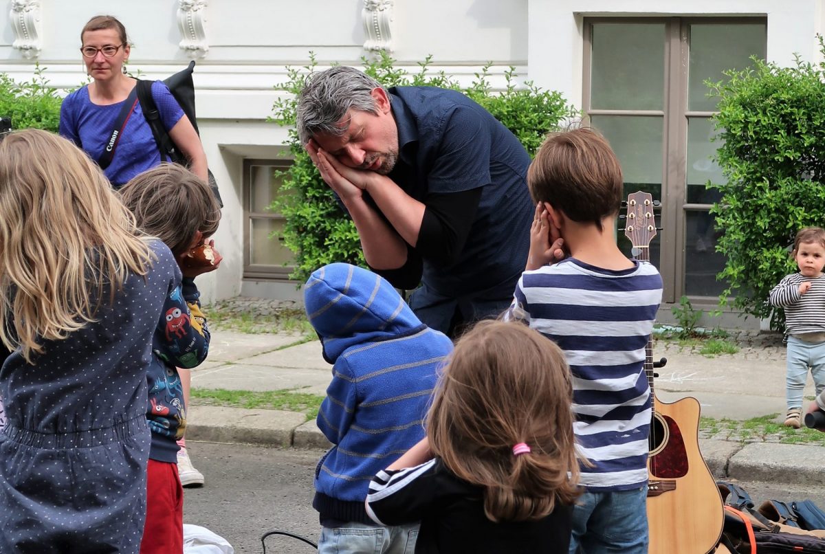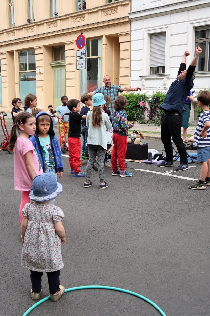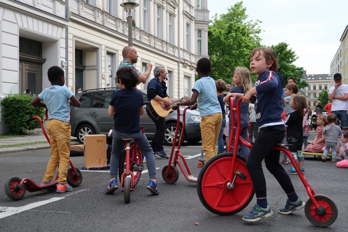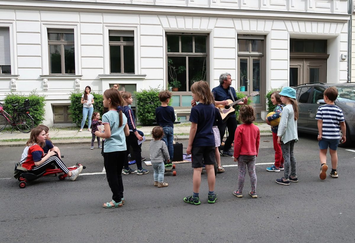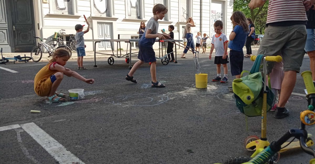 Am 11. Mai 2021 gab es auf der Templiner Spielstraße eine Besonderheit zu bestaunen: Das Puppentheater Fingerleicht führte das Stück "Des Kaisers neue Kleider auf", dem knapp 30 kleine und große Kinder gespannt folgten. Außerdem konnte erstmals unsere nagelneue Tischtennis-Platte bespielt werden. Am 18. Mai 2021 bauten wir auf der Spielstraße Tische und Kleiderständer für den Kleidungs-, Spielzeug- und Medientausch auf. Um zum Internationalen Kindertag, am 1. Juni 2021, spielte der Liedermacher Krawuttke Kinderlieder. Die Temporäre Spielstraße war an allen drei Terminen sehr gut besucht, die Stimmung bei bestem Frühjahrswetter ausgelassen. Kleiner Wermutstropfen: Einige Anwohner immer noch vergessen, ihre Autos umzuparken. Schade.