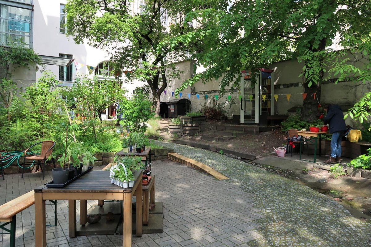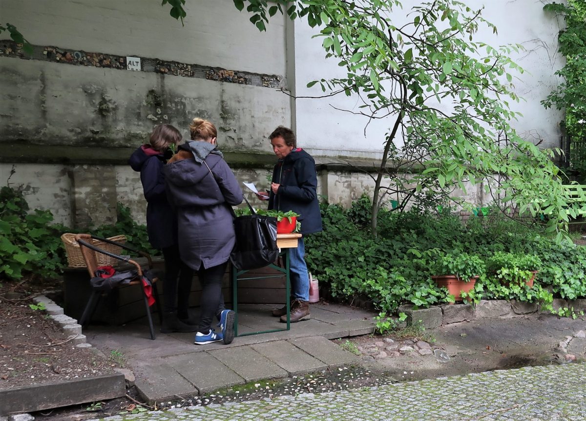 Besonders umringt und gefragt war die Kräuterpädagogin Petra Grünert. Sie gab professionelle Auskünfte zu essbaren Wildpflanzen und allerlei Tipps zu eigens gepflückten Wildkräutern und der entsprechenden Wirkung auf Körper und Seele. Die GRÜNE LIGA Berlin e. V. bot Infomaterial und Wissenswertes zum insektenfreundlichen Gärtnern an und verteilte Saatgutspenden.