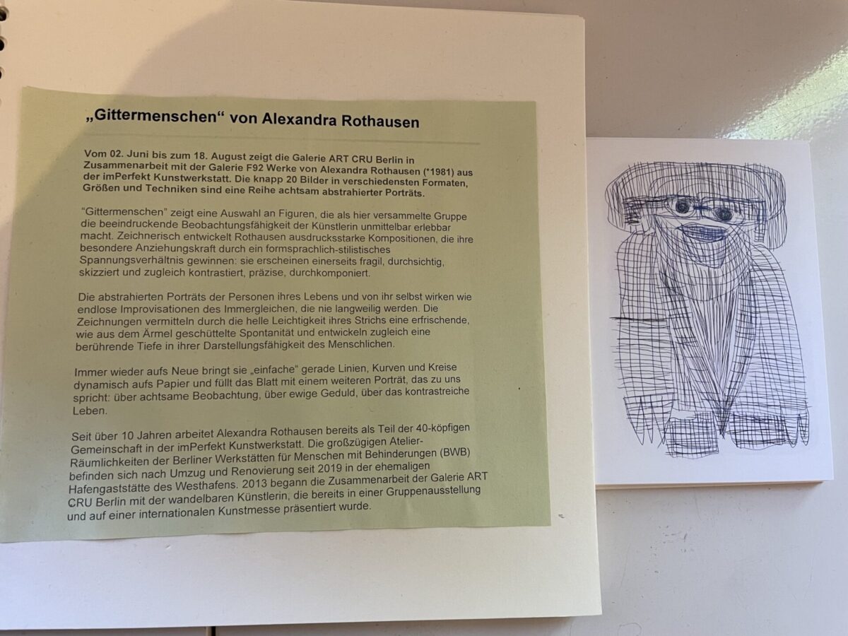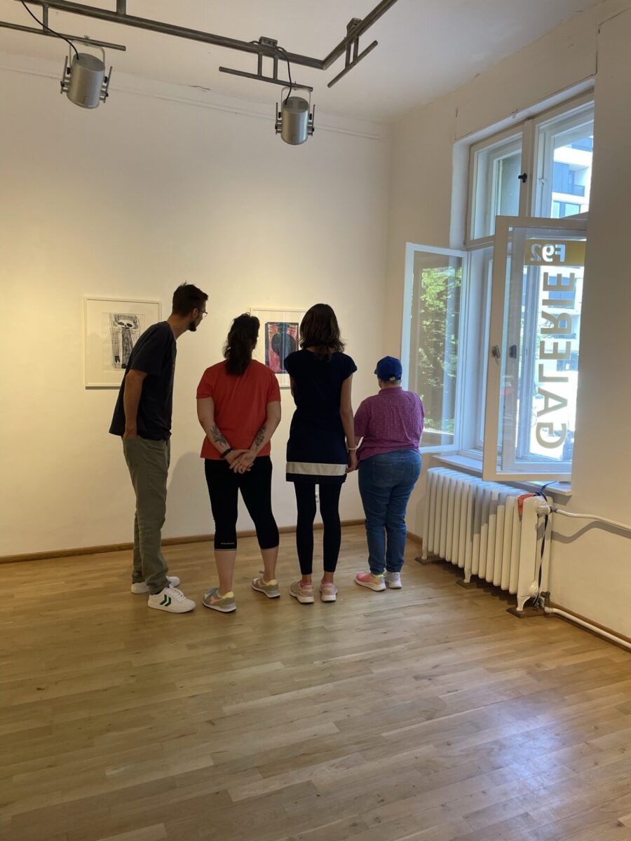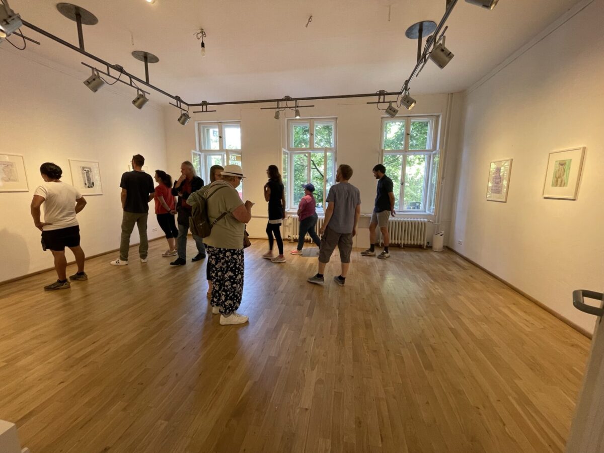 Im Anschluss traf sich die Gruppe mit der Künstlerin Alexandra Rothausen, die derzeit bei uns in der Galerie ihre Ausstellung "Gittermenschen" zeigt. Wir haben uns besonders gefreut, dass Frau Rothausen, ihre Mutter und der Kurator von ArtCru an dem Nachmittag für ein Gespräch ins Stadtteilzentrum gekommen sind.
