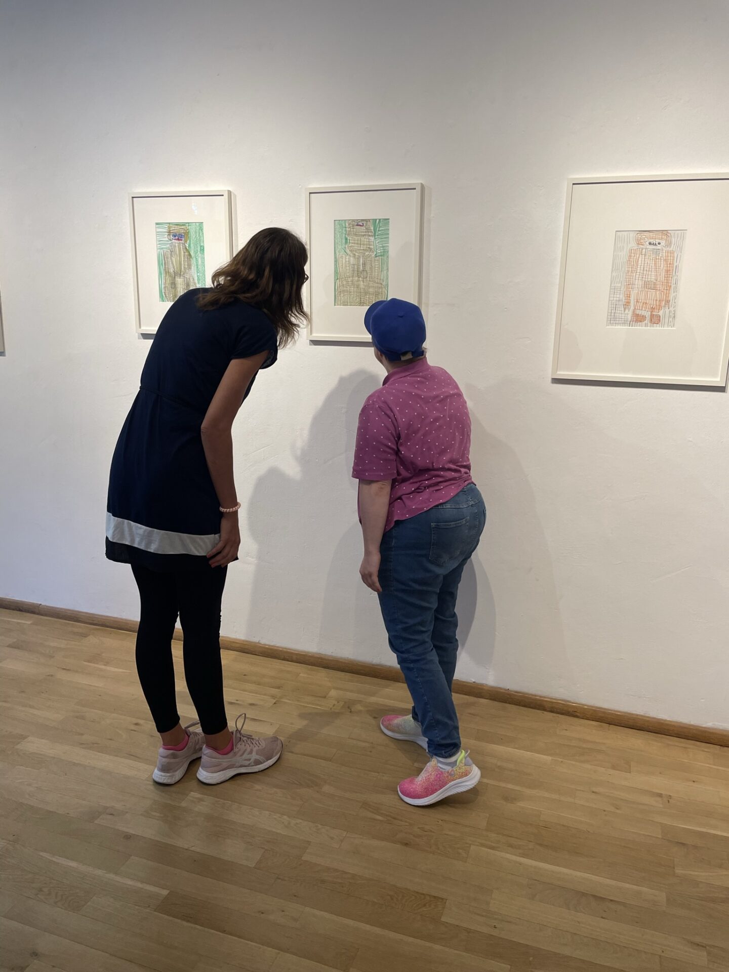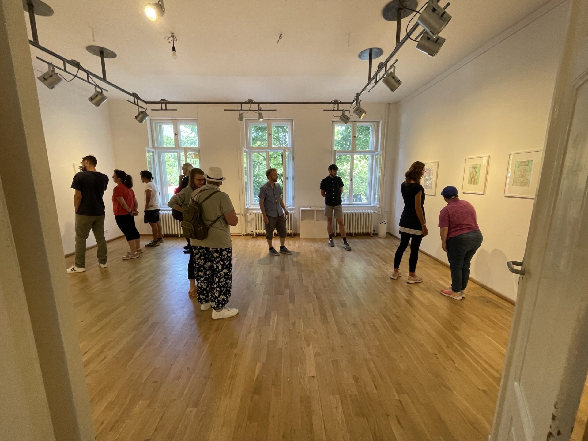 Im Anschluss traf sich die Gruppe mit der Künstlerin Alexandra Rothausen, die derzeit bei uns in der Galerie ihre Ausstellung "Gittermenschen" zeigt. Wir haben uns besonders gefreut, dass Frau Rothausen, ihre Mutter und der Kurator von ArtCru an dem Nachmittag für ein Gespräch ins Stadtteilzentrum gekommen sind.