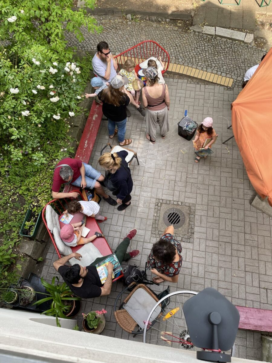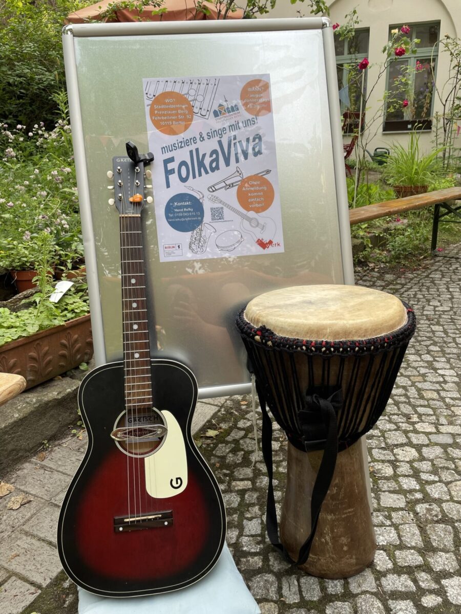 Sozialkritisch, mit einem Augenzwinkern, und viel Gefühl begann der Tag mit Daniel Scharf und seiner Gitarre vor dem Stadtteilzentrum. Danach gab es wildes trommeln und jammen für alle die Lust hatten, mit Musikerinnen unser neuen Gruppe "FolkaViva". Das Kiez Community Orchester nahm uns im Anschluss mit in die Welt der klassischen Musik und der ruhigen und leisen Töne. Zu guter Letzt machte der Chor von „Sing dich Glücklich“ den Sandkasten im Hinterhof zur Bühne und sang sich in die Ohren und Herzen aller Besucher*innen. Wir blicken auf eine gelungene Fête de la Musique 2023 und freuen uns auf das nächste Jahr mit Ihnen.