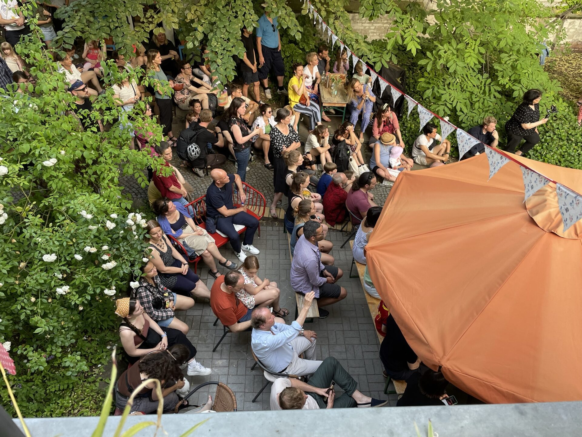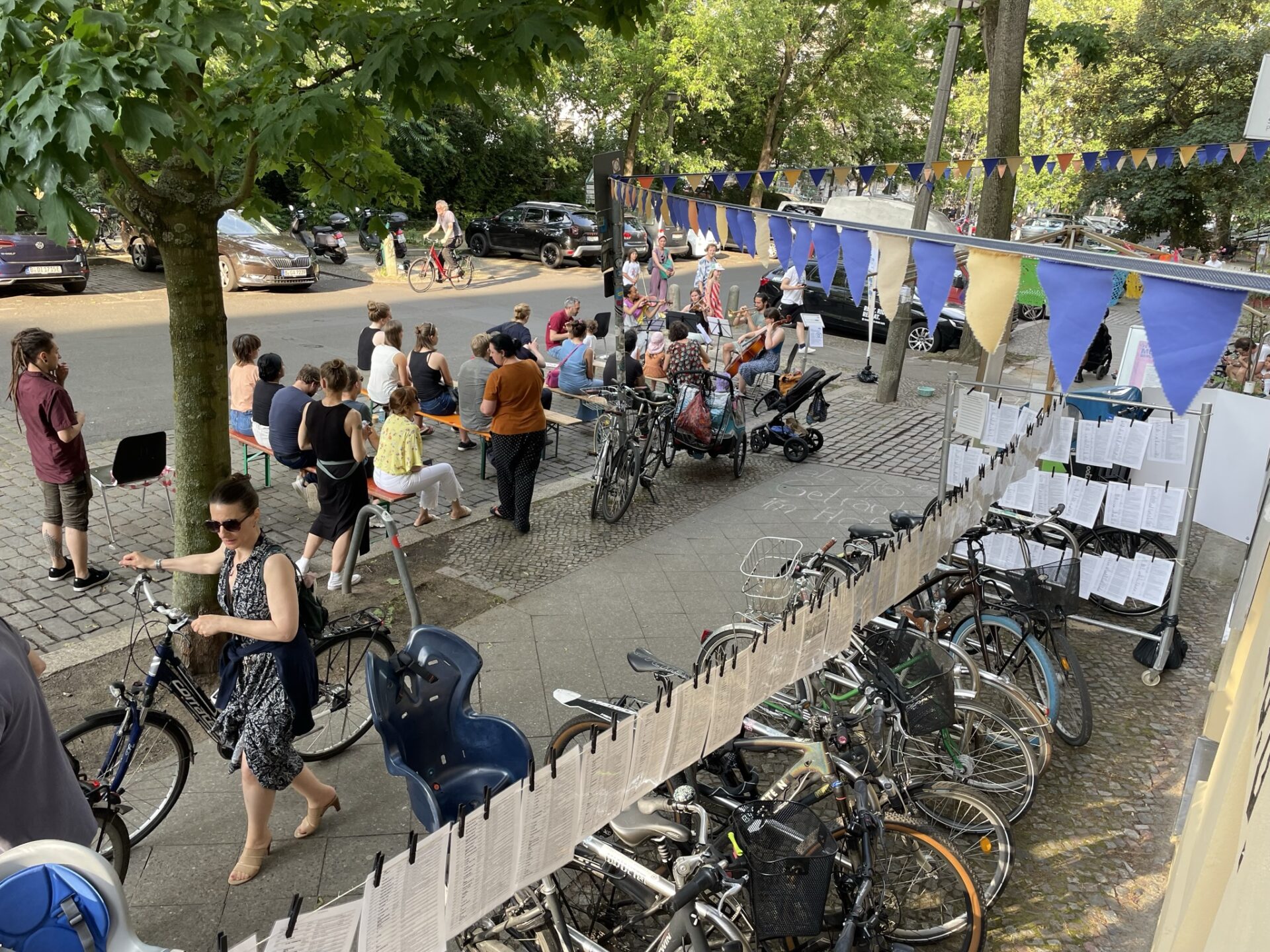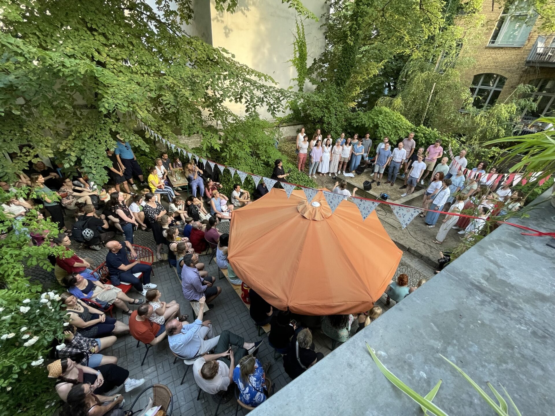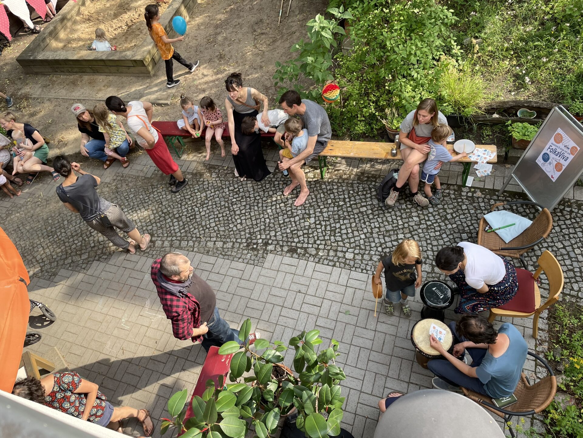 Sozialkritisch, mit einem Augenzwinkern, und viel Gefühl begann der Tag mit Daniel Scharf und seiner Gitarre vor dem Stadtteilzentrum. Danach gab es wildes trommeln und jammen für alle die Lust hatten, mit Musikerinnen unser neuen Gruppe "FolkaViva". Das Kiez Community Orchester nahm uns im Anschluss mit in die Welt der klassischen Musik und der ruhigen und leisen Töne. Zu guter Letzt machte der Chor von „Sing dich Glücklich“ den Sandkasten im Hinterhof zur Bühne und sang sich in die Ohren und Herzen aller Besucher*innen. Wir blicken auf eine gelungene Fête de la Musique 2023 und freuen uns auf das nächste Jahr mit Ihnen.
