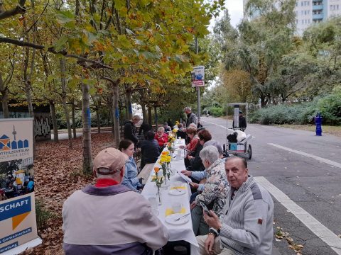 Weitere Bordsteincafés fanden am 7. (vor der Schwimmhalle), 14. (an der Hans-Eisler-Straße) und 21. September 2021 (vor dem Mühlenbergcenter) statt. Insgesamt gab es 40 Gespräche und drei Ad-Hoc-Beratungen. Inzwischen bestehen erste Bekanntschaften und einigen Themen werden weiter vertieft.