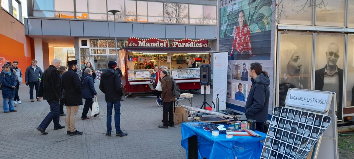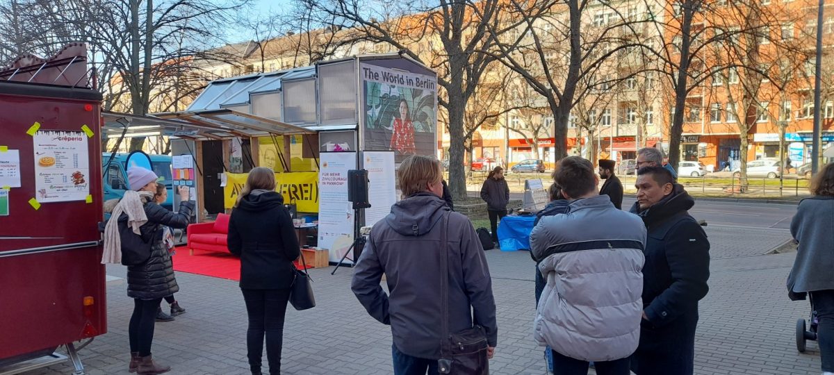 Am 22. März beteiligte sich „Hallo Mühlenkiez!“ an der gemeinsamen Aktion im Rahmen der Wochen gegen Rassismus, welche von vielen Akteurinnen aus Prenzlauer Berg durchgeführt wurde und auf dem Wochenmarkt im Mühlenkiez stattfand. Neben der Organisation und Logistik, an der „Hallo Mühlenkiez!“ mit viel Herzblut beteiligt war, wurden vor Ort Selbsttests zum Thema „Rassismus“ angeboten, Gespräche mit Nachbar*innen geführt und Informationen verteilt. Neben einer antirassistischen Ausstellung, gab es auch eine diskriminierungskritische Lesung für Kinder, einen interreligiösen Dialog zwischen Religionsvertreter*innen und Tipps von einem Coach für Zivilcourage. Die Aktion ging von 09.00 bis 13.30 Uhr.