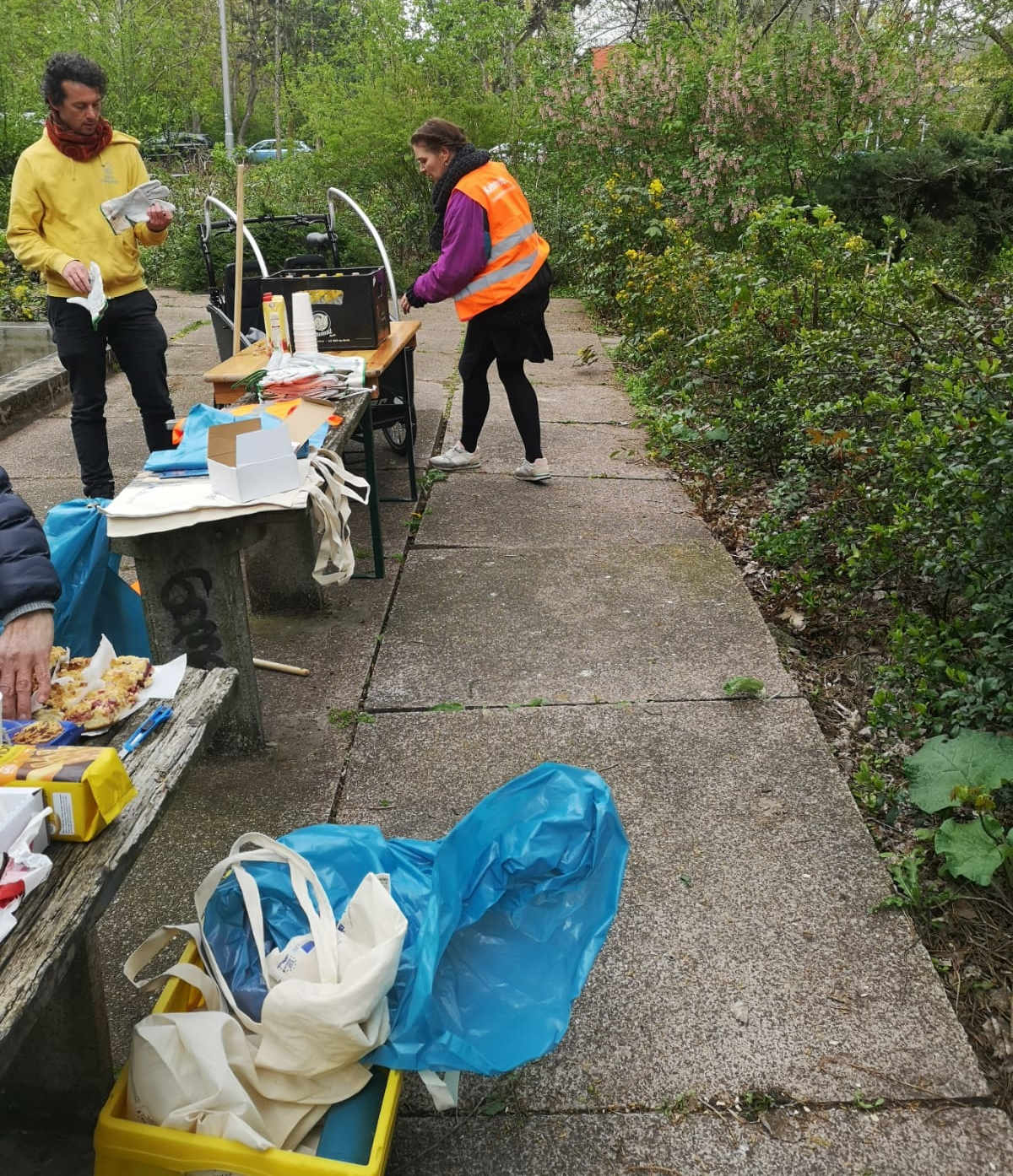 Mit behandschuhten Händen, der Müllsack in der einen, die Zange in der anderen Hand, ging es dem Abfall am 26.04. im Rahmen unserer Aufräumaktion am Brunnenplatz (Hanns-Eisler-Str/Thomas-Mann-Str) an den Kragen. Etwa 15 fleißige Helfende engagierten sich tatkräftig bei Wind und Wetter im Kiez. Wir haben uns sehr über jede Hilfe und auch übers Anfeuern gefreut, vielen herzlichen Dank an alle Mitstreiter*innen und an die freundliche Unterstützung der BSR-Initiative „Kehrenbürger“!