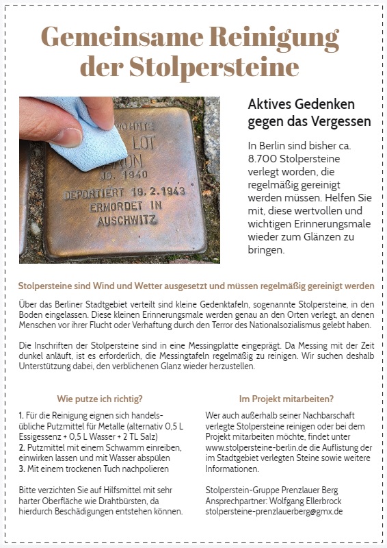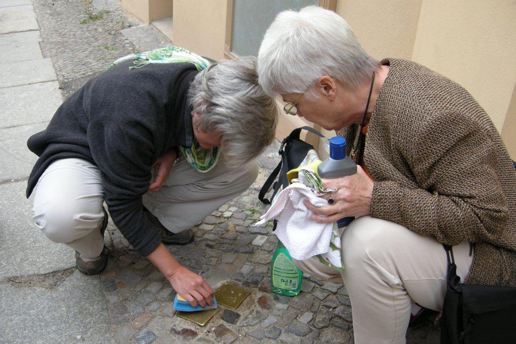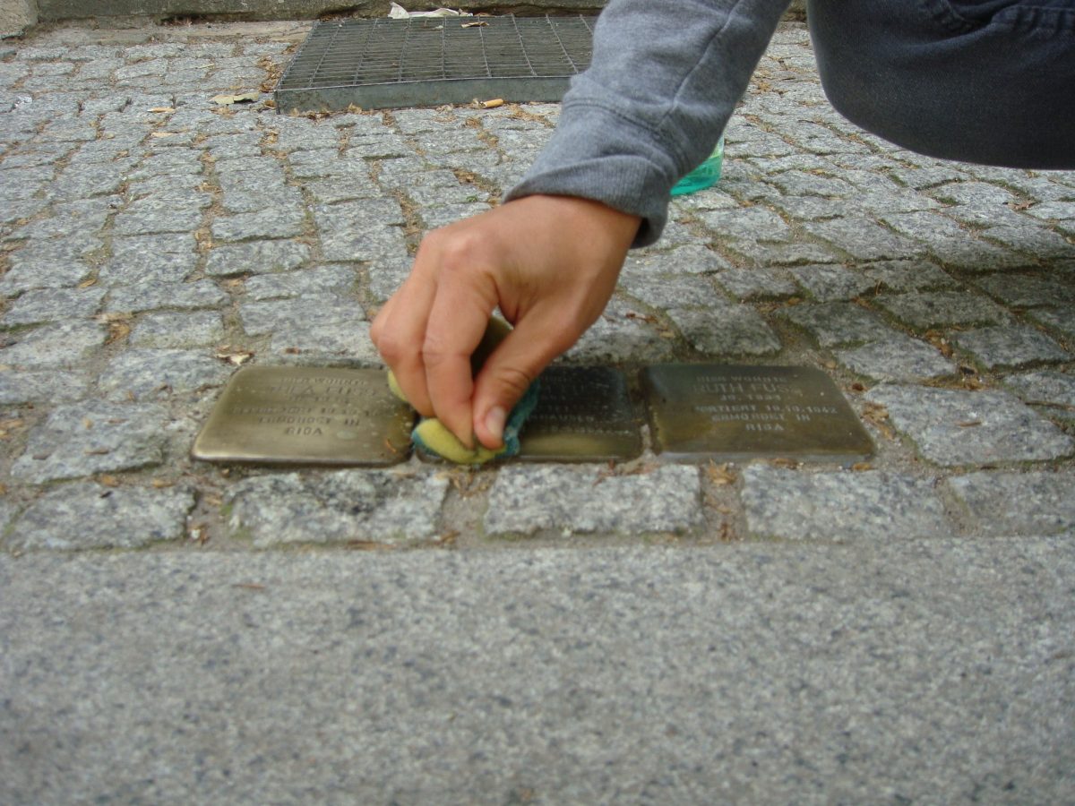 Damit Stolpersteine weiterhin vom Gehweg aus Menschen anblitzen und „stolpern lassen“, haben wir ein Patenschaftsprojekt ins Leben gerufen. Eine Patenschaft bedeutet, regelmäßig nach dem verlegten Stein zu sehen und ihn zu putzen.
