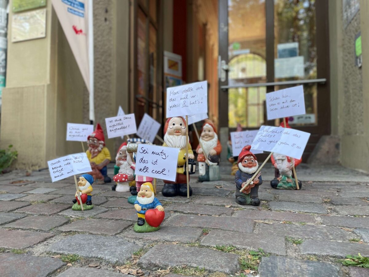 Vom 06.09.23–19.09.23 werden überall in Berlin Gartenzwerge auftauchen – an belebten Plätzen, bei Infoständen und Veranstaltungen, in U-Bahnhöfen und vor Sehenswürdigkeiten.